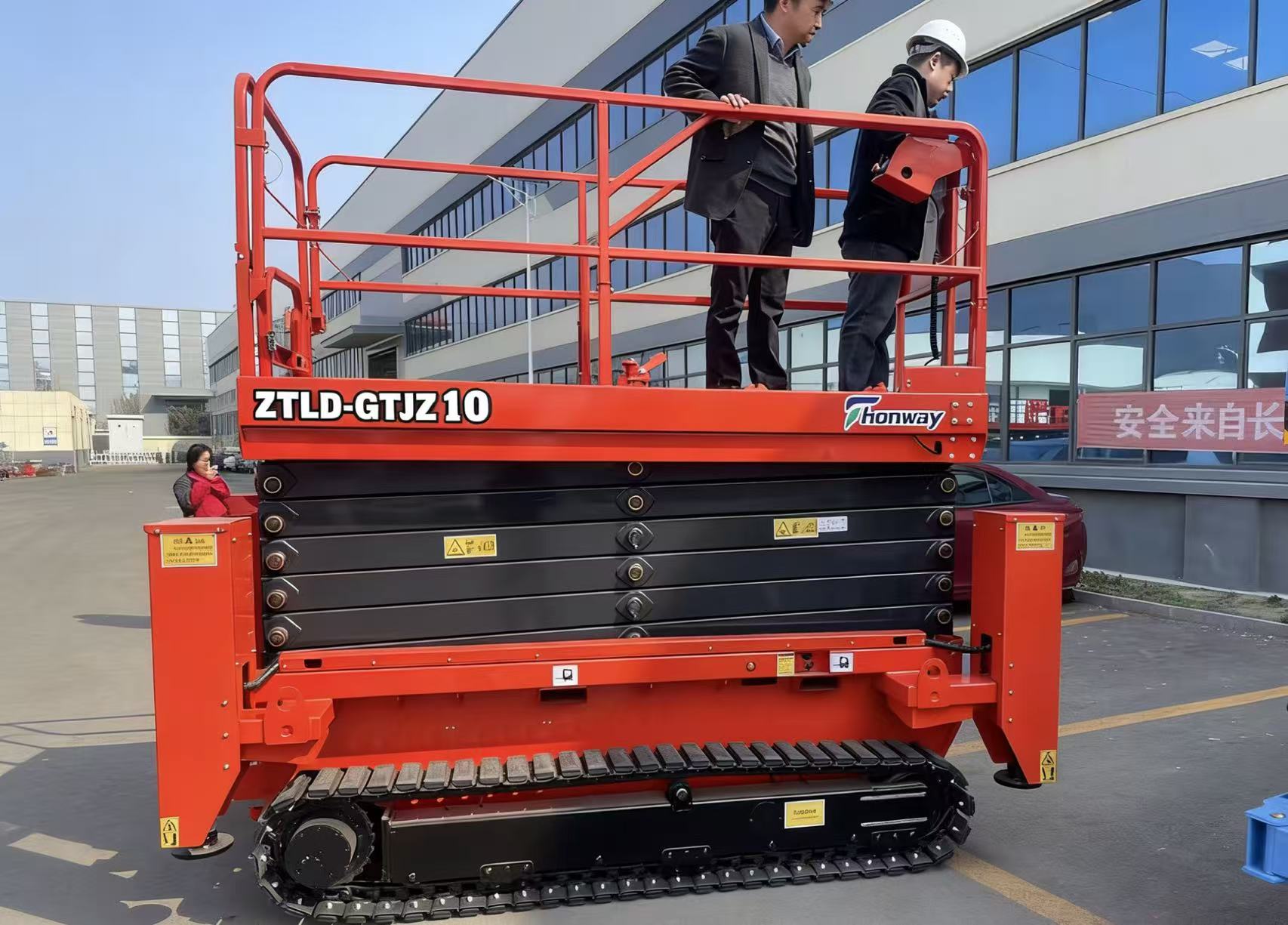 Designed for rugged outdoor terrains and complex construction environments, this crawler-type electric hydraulic lift excels in adaptability, operating efficiently in off-grid or challenging conditions. It features built-in maintenance-free lead-acid batteries, eliminating the need for external power and enabling effortless slope climbing. Constructed from premium thickened steel for enhanced structural strength, the platform includes overload and tilt protection systems for added safety and reliability. Dual controls (upper and lower) allow operators to manage lifting, movement, and steering from the platform. The electroplated paint finish employs electrophoresis technology, ensuring uniform coating coverage—including hard-to-reach areas like inner cavities, welds, and edges—significantly boosting corrosion resistance. This durable, fade-resistant finish extends product lifespan and elevates its premium quality.